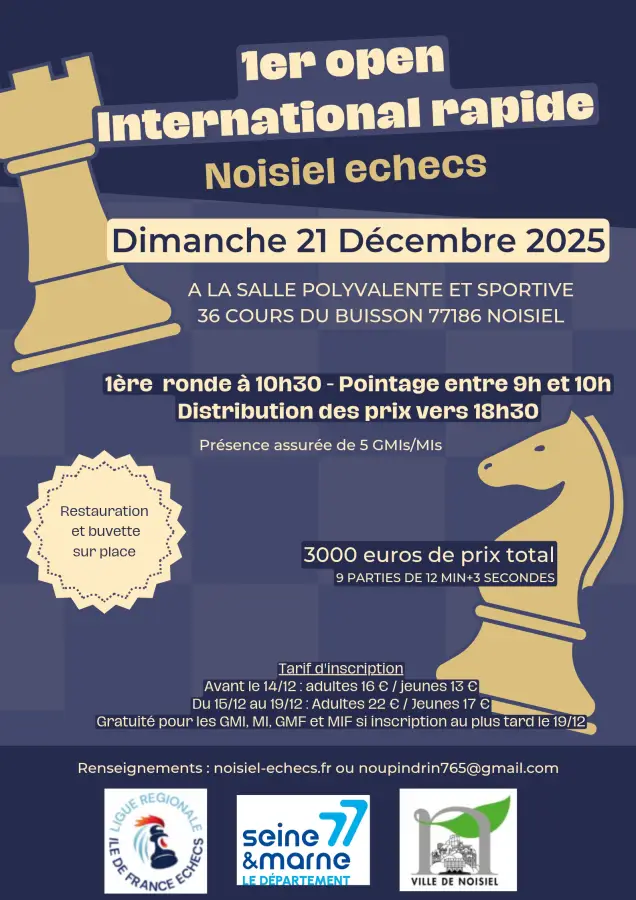 Du 25 au 28 août 2025 au club d'échecs de Noisiel