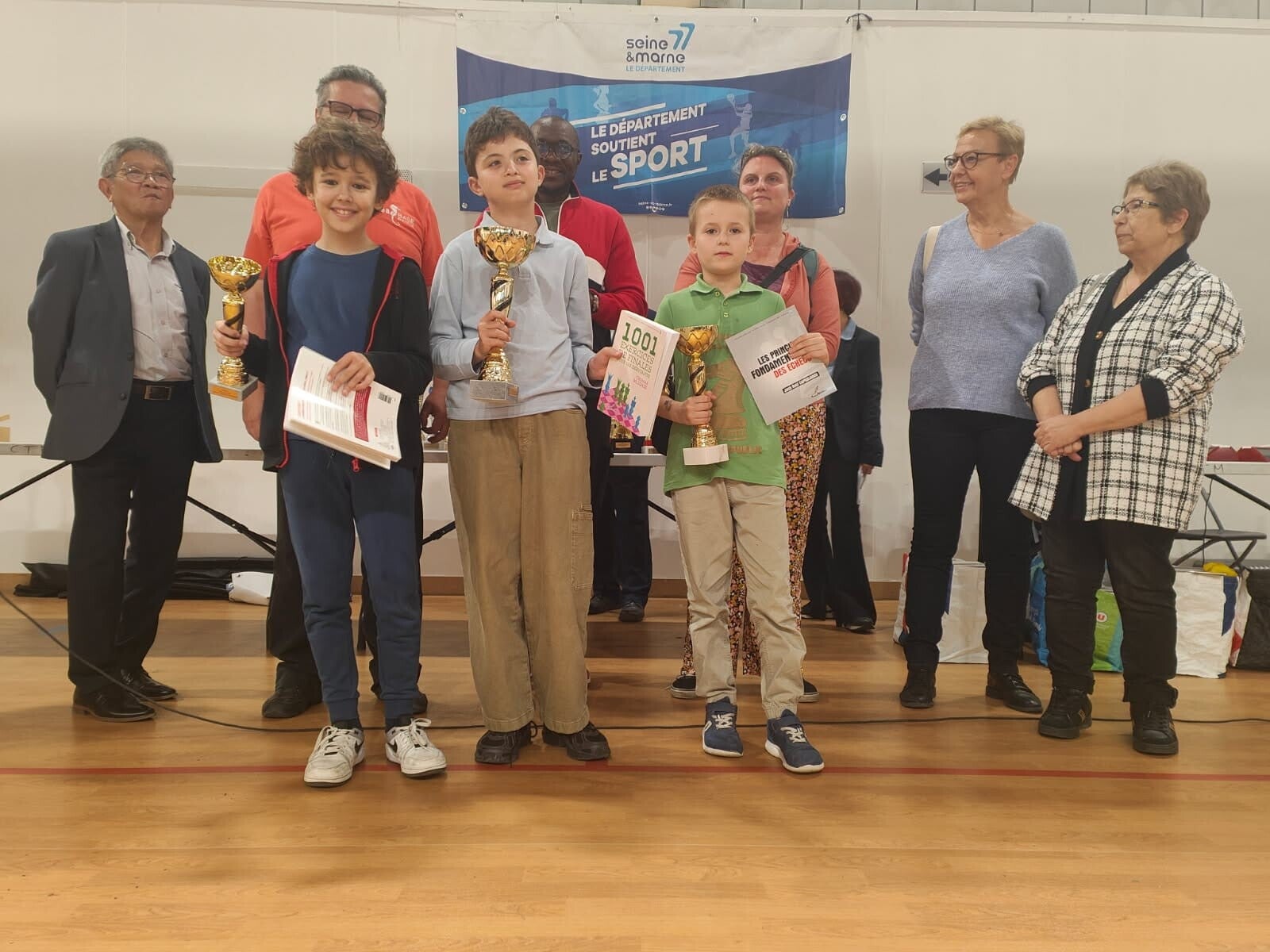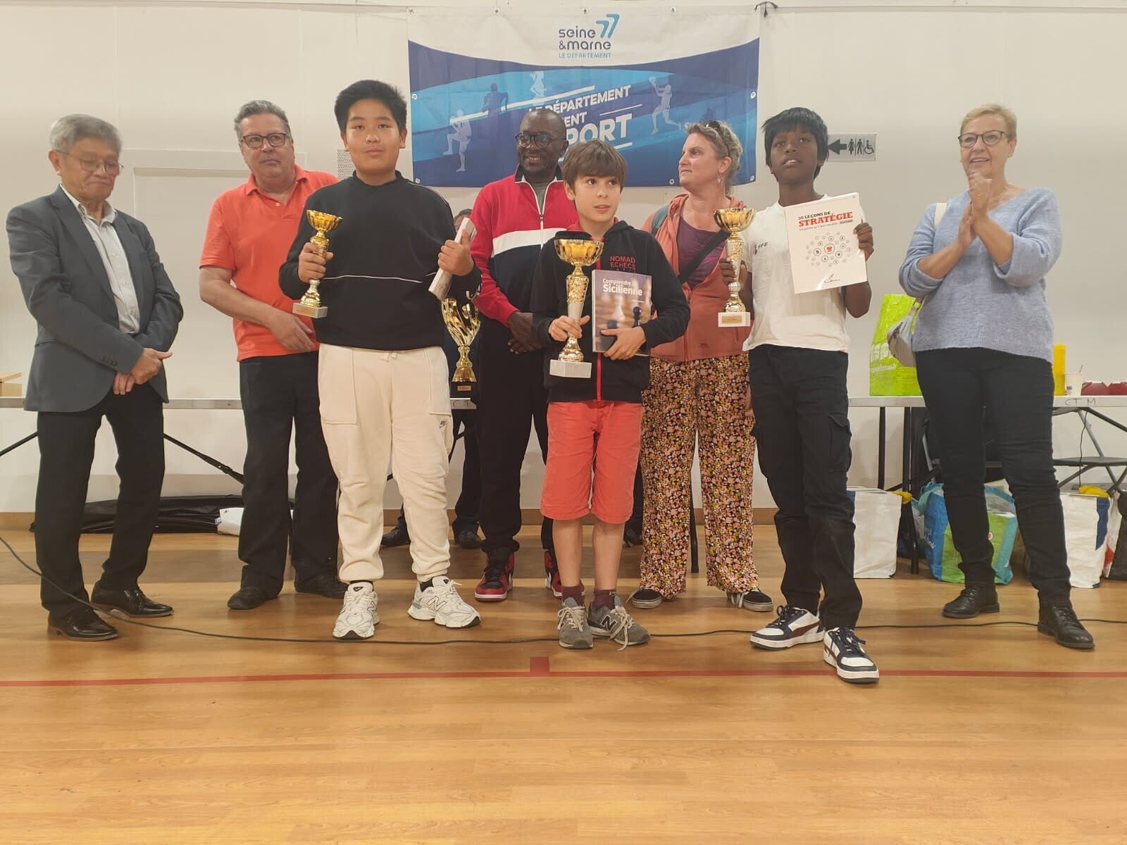 La remise des prix s’est déroulée en présence du président de la ligue d’échecs de l’IDF, Adrien DUQUESNE et de plusieurs élus de Noisiel. Sithal TIENG 1ᵉʳ adjoint au maire, Mahdia NEDJARI adjointe au maire des droits des femmes, Corinne TROQUIER, adjointe au maire éducation et activités périscolaires, Patrick RATOUCHNIAK, adjoint au maire finance, Magaly SABOUNDJIAN, adjointe au maire développement durable et Mièri MAYOULOU adjoint au maire service des sports.