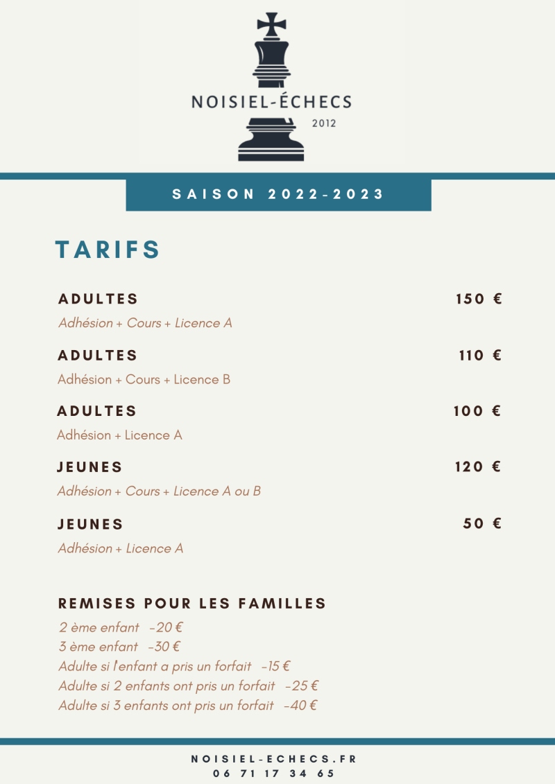 - 16 septembre 2022, tournoi de Rapide FIDE entre 19h30 et 22h15.
